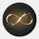 Símbolo infinito de joias Dourado com estrelas douradas sobre fundo preto. Design com estrela dourada.