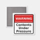 Aviso - Conteúdo sob pressão - ímã quadrado com design vermelho, branco e preto.