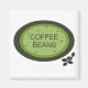 Um legal sinal verde e marrom de café. Alguns grãos de café soltos... perfeitos para um bebedor de café