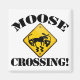 Um sinal de passagem engraçado avisando os motoristas dos perigos de bater em um alce na estrada.