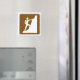 Símbolo de escalada de rocha como aquele que vê ao longo da estrada ou em Parques Nacionais. O ímã apresenta uma silhueta branca de alpinista e rocha sobre fundo marrom.