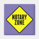 Anuncie seu negócio público notário com estilo e orgulho. A Magnet faz um presente ponderado para qualquer notário profissional ou agente assinante de empréstimos que preste serviços legais ao público. Este design de sinalização de estrada amarelo de zona notarial é adequado para fundos brancos e de cor clara.