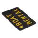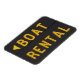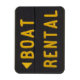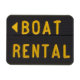 Fotografia de um sinal de conselho de madeira com palavras gravadas, amarelas pintadas, "Boat Rental" e uma seta apontando para a esquerda. Excelente pequeno presente ou sotaque para cabines, casas de lago, RVs ou cavernas de homem. Imagem copyright 2018 de Margaret E. Cmelik.