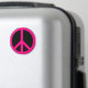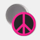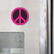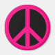 Um símbolo de paz cor-de-rosa rosa contra um fundo preto.