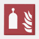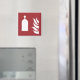 Frasco com uma alça do botão na parte superior e ícone de chama sobre fundo vermelho.