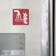 Aplicador de nevoeiro da água e ícone de chama em fundo vermelho.