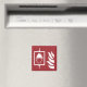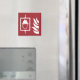 Ícone de chamas e elevador de bombeiros em fundo vermelho.