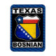 Sinal Magnet Americano do Texas Bósnio. Design clássico de sinal de rota dos EUA, com o texto TEXAS BOSNIAN e as bandeiras do estado do Texas e da Bósnia-Herzegovina.