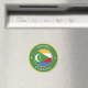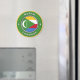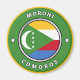 A bandeira das Comores é infundida numa forma circular. No círculo exterior estão o nome do país e o nome da capital, separados por duas estrelas decorativas.