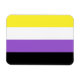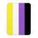 As pessoas não-binárias podem identificar-se como tendo dois ou mais sexos; sem sexo; se movendo entre sexos ou tendo uma identidade de gênero flutuante; ou sendo um terceiro sexo ou outro gênero, uma categoria que inclui aqueles que não colocam um nome no seu gênero. Cada cor de faixa representa diferentes tipos de identidades não-binárias: Amarelo para pessoas que se identificam fora do binário de gênero, branco para pessoas não-binárias com múltiplos gêneros, roxo para aqueles com uma mistura de gêneros masculinos e femininos e preto para indivíduos agendantes.