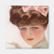 Trabalho de arte de Vintage de uma jovem bonito cabeleira escura com arco rosa segurando uma xícara de chá