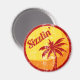 "Sizzlin" - design de verão do estilo dos anos 70. Design de onda de calor clássico a quente com palmeira. Vestido, vintage.