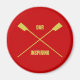 Íman divertido para um cortador ou escultador. "Oar inspirador", admirador, cruzou remos e trocou um trocadilho em uma cor ouro em um fundo vermelho profundo.
