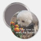 The design depicts a peaceful, free, happy and loving bichon taking time to smell the flowers