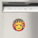 Símbolo antigo com uma nova torção. Rosto amarelo com fundo brilhante colorido em vermelho, laranja e verde com a palavra "Liberdade" coroando-o. A liberdade sorri através das lágrimas enquanto há pistas feitas através da cara. Ela está marchando em um protesto? Sorria rebelde, sorria para a Liberdade!