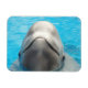 Baleia de Beluga tirando sua cabeça da água com um olhar manchado em seu rosto.