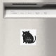 Smiling smugly because he ate your dinner and he knows he's cute enough to get away with it.