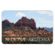 Íman flexível de 4" x 6" retangular com uma imagem de uma pintura aquosa de uma formação de rocha vermelha predominante e reconhecível perto da cidade de Sedona, na base da Crimson Cliff. O marco distinto é Snoopy Rock, uma semelhança com Snoopy o cão das charges do Peanuts. Do Snoopy Rock estão vendo de Sedona e suas formações geológicas circundantes. Veja toda a coleção de Magnet Arizonas na seção HOME.