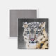 Leopardo muito legal com belas marcas faciais, olhos azuis e nariz rosa, coberto com uma poeira leve de neve. presente de excelente para qualquer um que ama gatos da selva.
