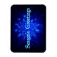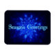 Um tema vitorioso com um enxame de flocos de neve fractais azuis. A leitura de texto "Saudações da Estação" aparece em azul e branco brilhantes.
