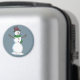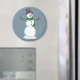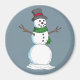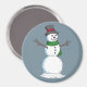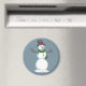 Um boneco de neve, mas arrepiante, veste um chapéu desossado vermelho e um cachecol verde nesta ilustração de vinho feita por Richard H. Fay.
