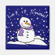 Bonitos imãs e presentes de inverno com ilustração de um boneco de neve vestindo um cachecol roxo lá fora onde está nevando e o texto lê: Deixe-o nevar. roupa de feriado excelente e presentes de férias para crianças, crianças e adultos que amam homens de neve! Da coleção de Natal de Designs de Lesruba.