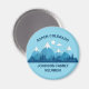 Magneta azul personalizada para a sua cabana de esqui ou festa de reunião da família do Colorado para pessoas de esqui e férias de inverno. Este design personalizado legal apresenta um desenho fofo de montanhas com capas de neve e uma paisagem azul. Uma paisagem natural excelente para uma família amante do exterior para sua expedição natural. Excelente para promover seu restaurante ou compro viagem.
