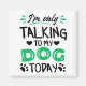 Design de texto de cachorro bonito e engraçado com a citação "Só estou falando com meu cachorro hoje". Uma combinação perfeita para cada amante de cachorro e dono de cachorro.