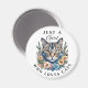 Gato de brindle de cinza de aquarela, cômoda, rodeado de flores rosa e azuis.