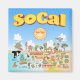 Um desenho do sul da Califórnia - mostrando Los Angeles, Anaheim, Long Beach, San Diego. Personagens de desenho animados de todos os tipos de natações e saltos e brincadeiras sob o brilhante sol da Califórnia brilhando acima de tudo.