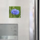 Esta imagem fotográfica de um girassol azul brilhante num campo inglês fará você pensar no verão o ano inteiro! Design apresenta uma cabeça vívida de girassol solteiro contra um campo verde de gramíneas. Um presente adorável para um amante de flores ou alguém que ama a Inglaterra rural. Esta imã de geladeira também está disponível em forma redonda.