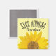 Um design feliz e ensolarado com um girassol solteiro e texto "Bom dia, sol-sol".