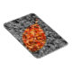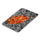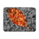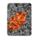 Fotografia de outono, colorida seletivamente, de folhas mirtilosas caídas de crepe, com forma de folha moldada a ouro, vermelha, laranja e amarela, contra fundo preto e branco.