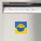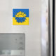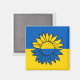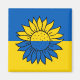 Sonnenblume als Symbol für Frieden und Arbeit auf dem Hintergrund der ukrainischen Flagge. Die fleißigen Menschen in der Ukraine werden in der Lage sein, ihr zerstörtes Land wiederaufzubauen.