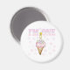 Um único design de primeiro aniversário em T-shirts de primeiro aniversário, fatos-chave, botões, bolsas e muito mais, com um bonito bolo de aniversário de sorvete cor-de-rosa, com uma vela e um texto cor-de-rosa que diz "Eu sou Um"!