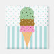 Este design apresenta um cone de sorvete triplo (morango, chocolate com chip de chocolate branco e mint chocolate chip) em uma bolinhas azul clara e fundo listrado. Projetado para ir com nossos produtos "Cone de Sorvete" na seção de artigos e coisas de nossa galeria.