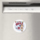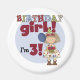 Uma adorável menina de cabelo preto e um vestido vermelho e branco, um cupcake, balões, e texto que diz: "Garota de Aniversário I'm 3!" em Camisetas de aniversário de 3 anos, fatos de corpo, canecas, ímanes, cartões, adesivos, sacos de presente de aniversário, e muito mais!