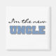 Eu sou o Tio Novo T-shirts, capuzes, cartões, botões de anúncio para bebês, ímãs, chaveiros e outros orgulhosos itens de tio novo com texto preto e azul.