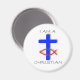 Íman redondo de 3" com peixe cruzado e cristão (ichthus) que diz "Eu sou cristão".