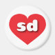 Este ímã apresenta um coração vermelho vibrante contendo as letras maiúsculas negros, brancas e arredondadas sd, uma abreviação lúdica para Dakota do Sul, o estado Monte Rushmore.