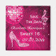 Elegante, glamourosa 16/Doce 16 imã salve o dia. Trendy glitz e glamour Guarde as datas para as suas celebrações de festa de aniversário Sweet 16. Bela e deslumbrante prata brilha diamantes borbulhando joias de notas musicais imagem de nota musical, bola de retrovisor cor-de-rosa quente e brilho prateado estilete a imagem de calçado de moda de salto alto em um fundo rosa quente chic. Uma imã salve a data bonita, elegante, na moda, bonito para garotas adolescentes. Meninas vão adorar este design legal, divertido, engraçado e feminino por sua música glamourosa e dançando lindas 16 festas.