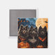 Libere o espírito assustador com esta design sombria do Dia das Bruxas apresentando um bando de cachorros sob um céu escuro e iluminado, cercado por morcegos voadores e abóboras brilhantes. Perfeito para aqueles que amam um toque de diversão terrível com seus amigos peludos!