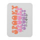 Esta design mostra a frase "Spooky Spooky Vibes" organizada em cascata, em formato empilhado. A palavra "Spooky" é repetida três vezes, cada uma com uma cor diferente — começando com uma laranja vibrante, passando para um rosa macio e terminando com um roxo pastel. As letras são grossas e arredondadas, dando uma aparência divertida e espumante que contrasta com o tema assustador. A palavra "vibrações" é escrita abaixo em uma fonte delicada, preta e cursiva, acrescentando um toque de na moda ao design geral. Pequenos sotaques rodeiam o texto, melhorando o humor caprichoso e festivo. Esta design é perfeita para uma divertida e leve tomada do Dia das Bruxas.