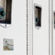 Squirrel Point Lighthouse sits on the banks of the Kennebec River in Maine on a dark misty day. The opposite bank near Phippsburg is shrouded in fog. Lichen grows on the bell house roof and the rocks in the foreground. New spring grass springs up around the brush still bare from the long winter. Sargassum laps against the rocky shore showing how close the lighthouse is to the water.