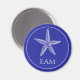 Estes ímãs monogramas redondos, inspirados na costa, têm uma estrela branca num fundo de azul-marinho clássico. Personalize o monograma com sua escolha de iniciais. Excelente para sacos de presentes monogramas de praia.