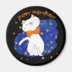 White Kitty Cat Blue Starry Night com Dourado Stars Classic Round Sticker adiciona um toque de Dia das Bruxas aos seus presentes, cartas e correio.