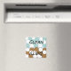 Íman de status da lavadora de louça com bolhas de clip art em azul para pratos limpos e marrom para pratos sujos.