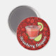 Um copo de daiquiri de morango com granizo. Um fundo vermelho perfeito. Texto personalizado.