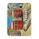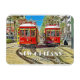 New Orleans Streetcars apresenta uma imagem de viagem de arte retrô antiga que mostra os famosos bondes vermelhos de Nova Orleans.