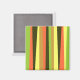 Um design irregular vertical listrado em verde, laranja, amarelo pálido, ocre de ouro e número bruto, cada um com um papel sutil como efeito de textura.